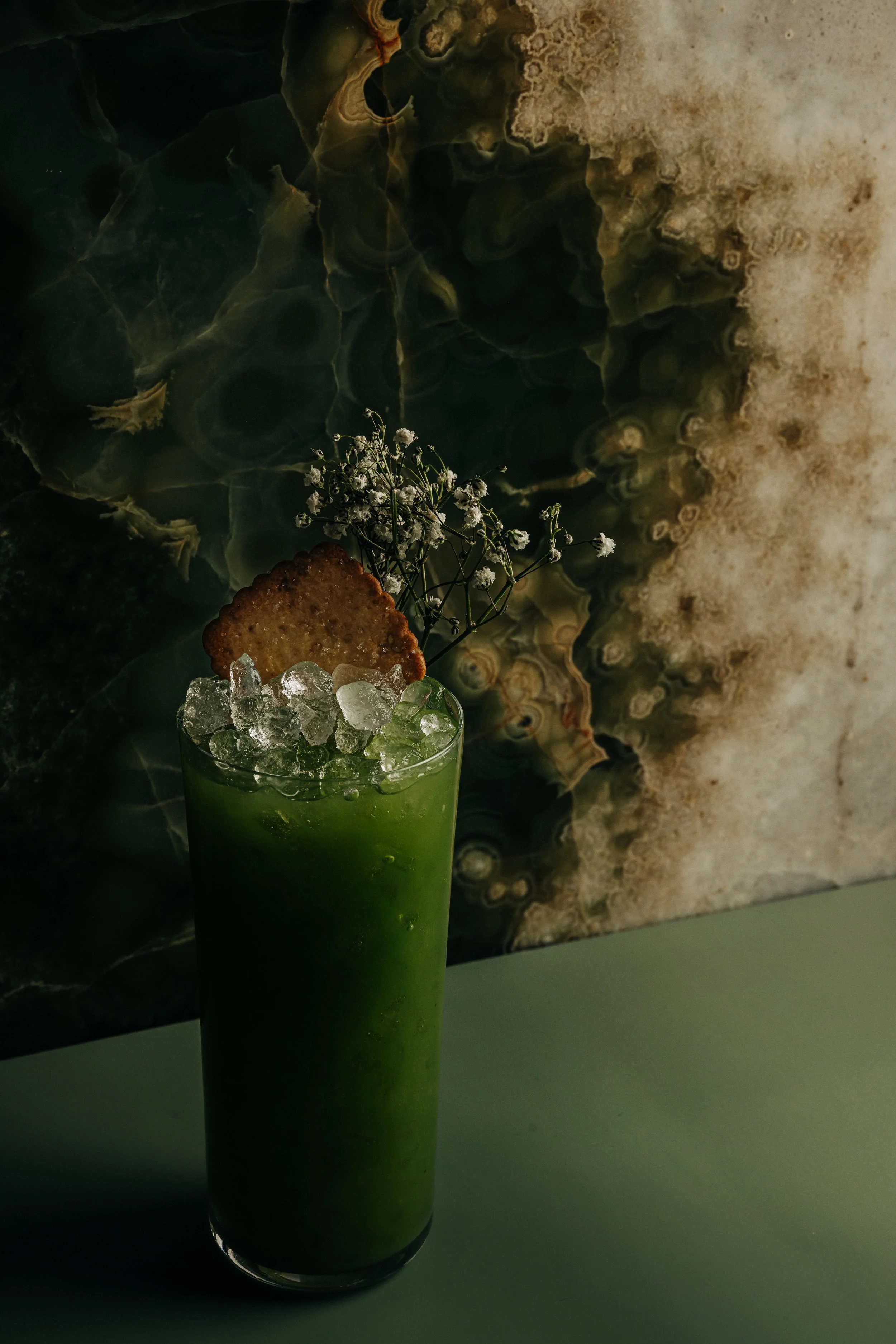 mijenta blanco tequila, condesa clasica gin, lo-fi dry vermouth, 52 green juice, house tea blend, toasted rice